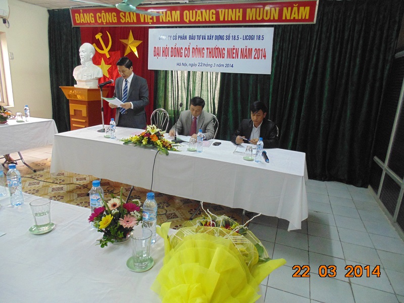 Công ty Cổ phần đầu tư và xây dựng số 18.5 (LICOGI 18.5) tổ chức Đại hội đồng cổ đông thường niên năm 2015 Sáng ngày 14/03/2015, tại trụ sở Công ty - Số 471/Nhà H2A,...